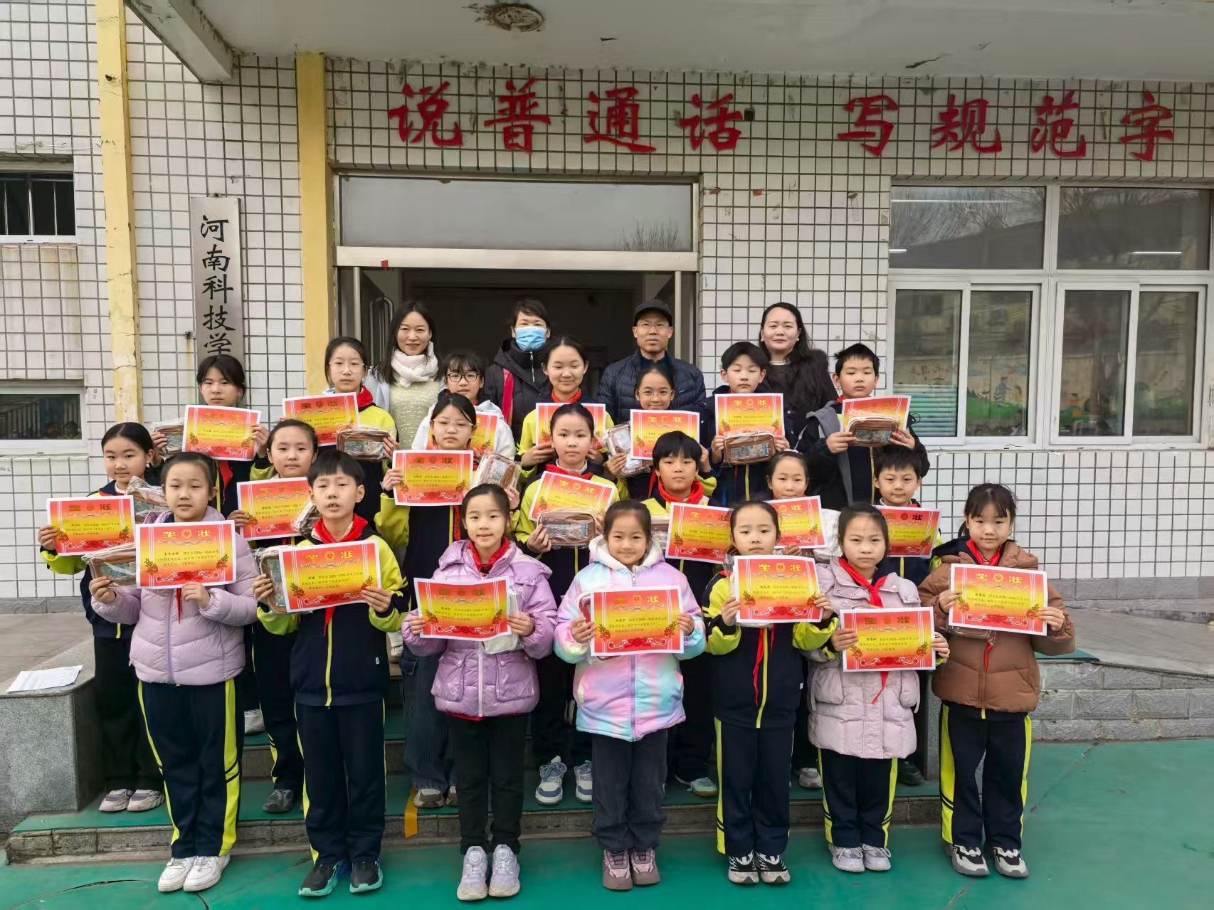 典礼颁奖环节,校长郭斐杰与李广州副校长共同为“三好学生”“优秀班干部”“优秀少先队员”颁发奖状与奖品。郭斐杰寄语获奖学生珍惜荣誉、做好表率,同时鼓励全体学生以优秀为榜样,在新学期树立更高目标、追求更好发展。