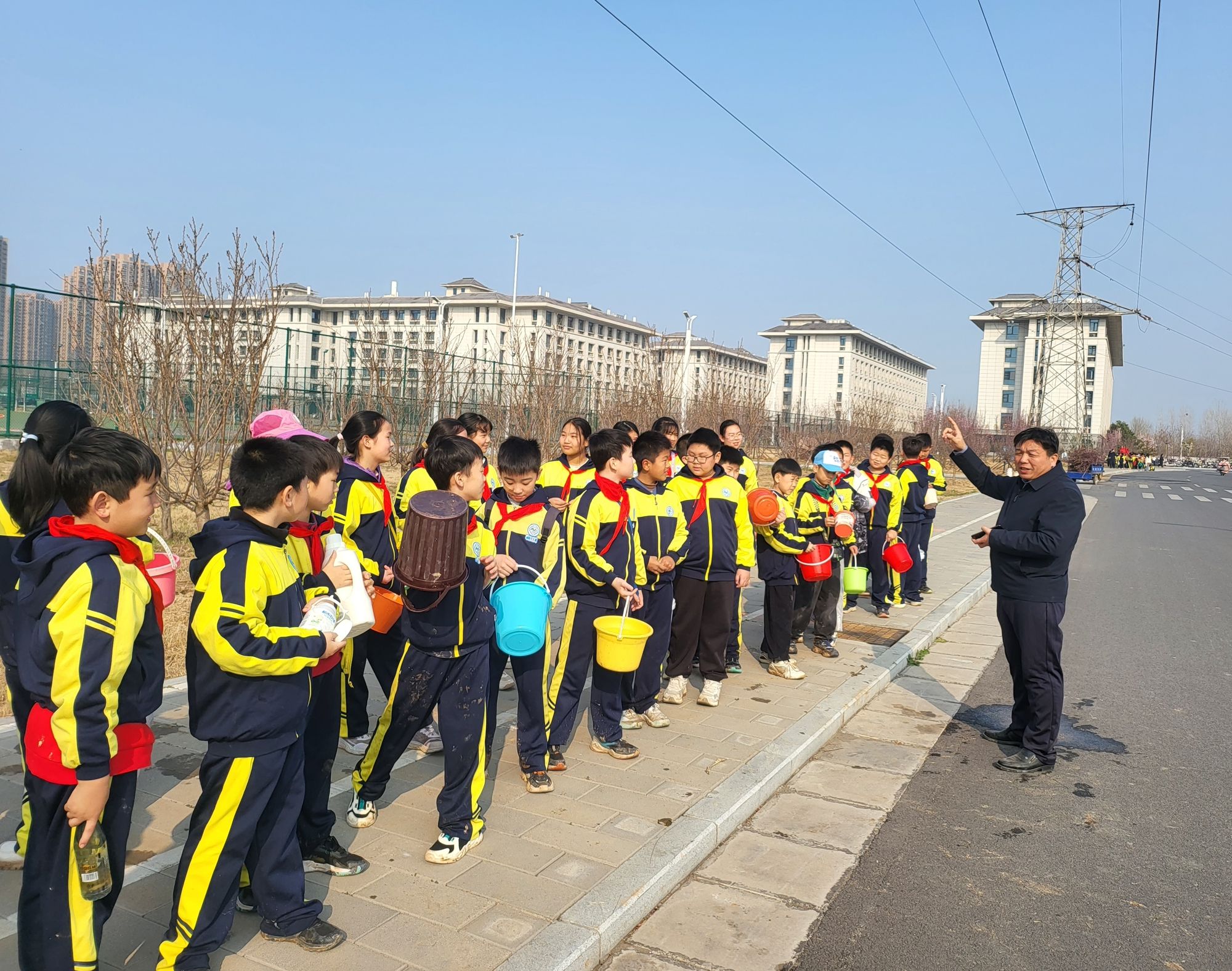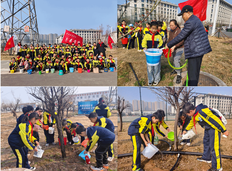 春风添新绿 雷锋伴我行。3月12日下午,在第48个植树节当天,子弟学校结合学雷锋活动月,组织开展“学雷锋 护新绿”植树节主题实践活动,以实际行动播种绿色希望,践行雷锋精神,为美丽校园再添生机。后勤服务中心副主任张建设,子弟学校校长郭斐杰、副校长李广州、少先队大队辅导员姚艳芬,与四年级师生100余人共同参与本次活动。